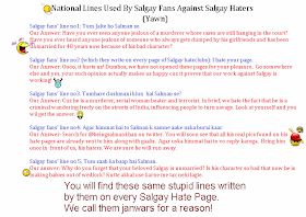 Admins of Salman hate pages reported that they laugh out loud when they read messages left by his fans. They always have the same words. Interestingly, they have only 5 lines. Yes, bhaitards use the same lines everywhere. We bring you all them in the poster below. Just click to read.